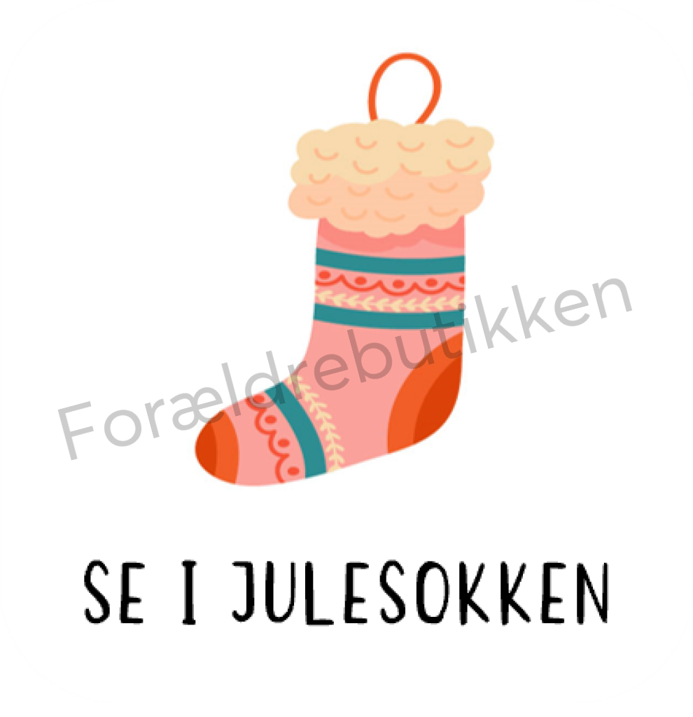 Piktogrammet "Se i julesokken" er en festlig påmindelse til barnet om at tjekke julesokken for overraskelser fra nissen. Det vækker spændingen og forventningen til julen på en sjov og hyggelig måde.