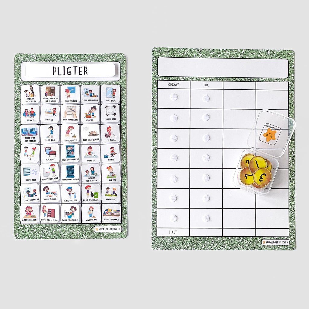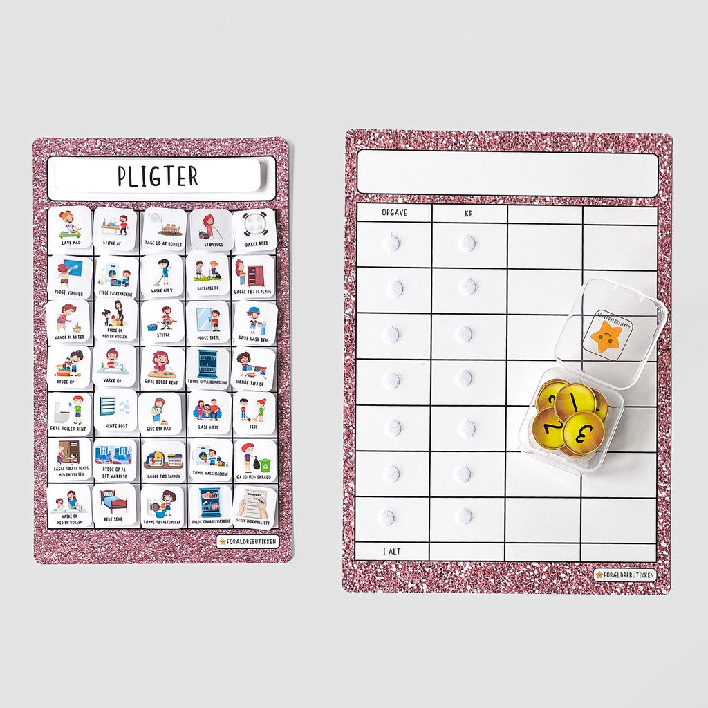 Pakkeløsning - Pligter og Lommepengetavle med mønter