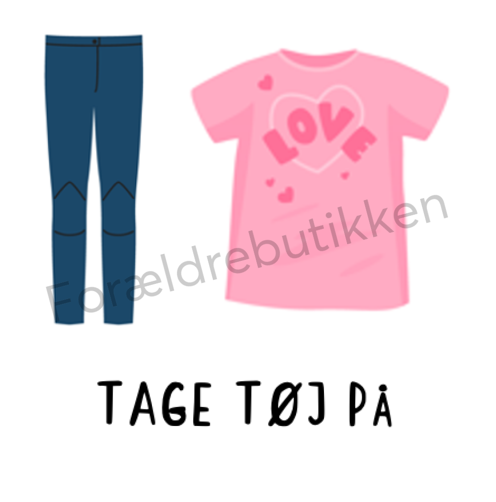 Piktogram - Tage tøj på (Bukser & lyserød t-shirt)