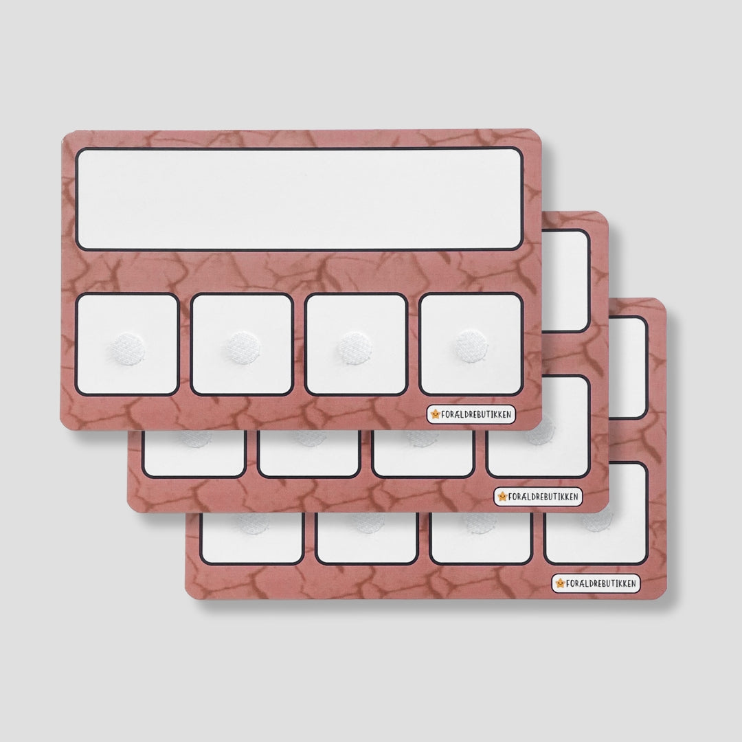 • Felter med velcro, der passer til Forældrebutikkens løse piktogrammer, hvilket gør det nemt at skifte og justere aktiviteter løbende.